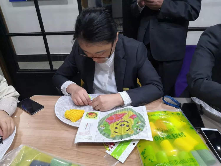 综合居民意见,居委干部很快确定了DIY垫子的类型——“段段绣”,并采购了几十份材料包。据了解,“段段绣”类似于十字绣,但比十字绣更大更立体,成品也显得比较厚实,正好符合老人们的需要。