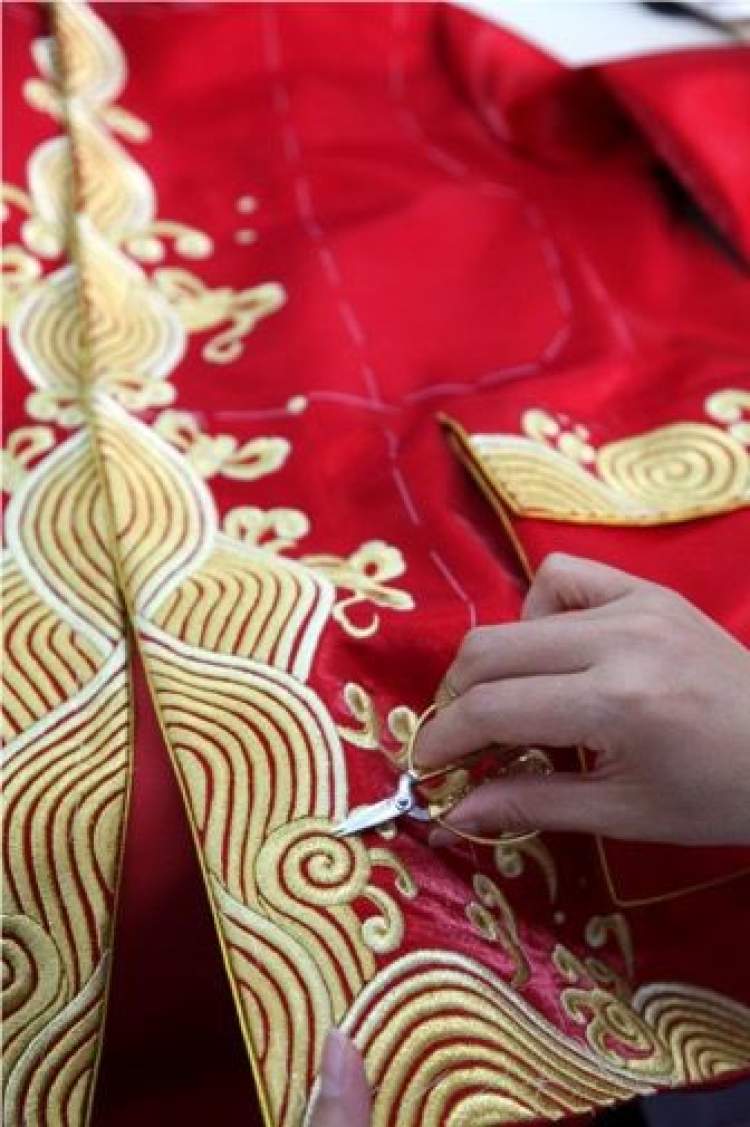 喜庆的红色与祥瑞的金色交融形成一种强烈的“充满热情与爱”的气场,流苏、夹棉、绸缎的多面料运用尽显华丽风格!