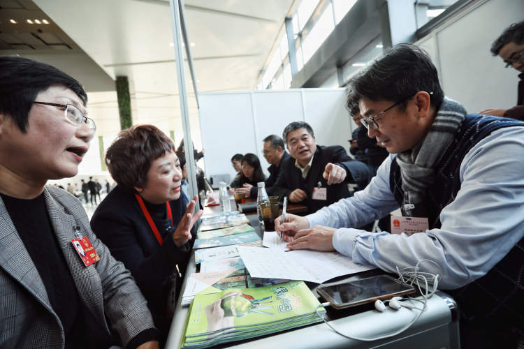 ■人代会“摆摊”办公现场