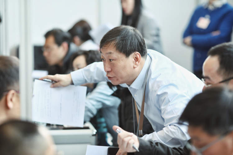 19日下午,上海市各委办局和职能单位在市人代会现场“摆摊”办公,集中办理代表意见,接受代表咨询。