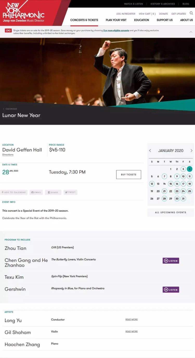根据纽约爱乐官网显示,1月28日,余隆将拿起指挥棒,携手青年钢琴家张昊辰,再次登陆美利坚,指挥纽约爱乐上演“中国农历新春音乐会”。曲目中,上交本乐季驻团艺术家周天的《礼献》赫然在列,这也是上海交响乐团140周年委约之作的美洲首演。