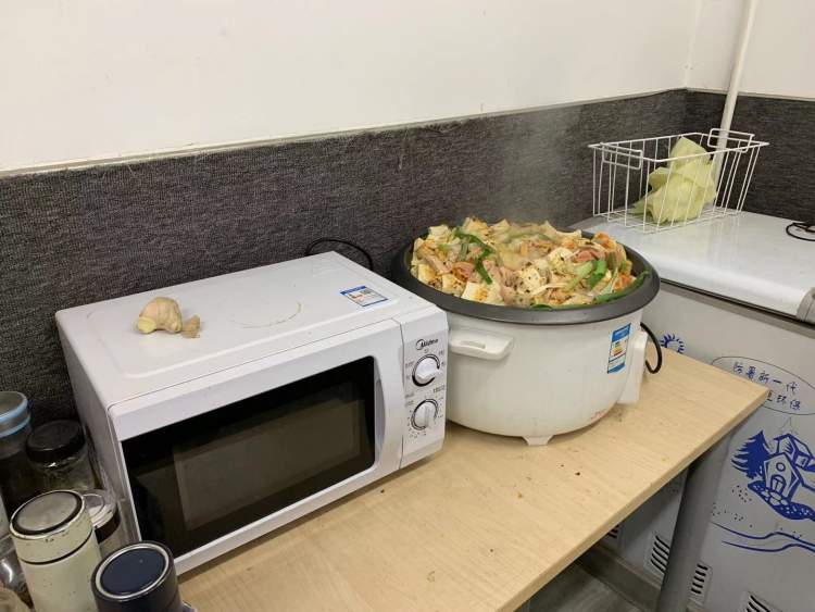 今天的顺丰速运四川北路网点比前几日略微清闲了点,下午时分,存放快件的区域内剩下的包裹不多,朱月壮和同事们也能在休息室里稍微坐上一会儿,一旁的电饭锅里煮着关东煮,小小的房间里香气扑鼻。按网点经理彭军的话来说,就是“高峰期总算缓过来了”。