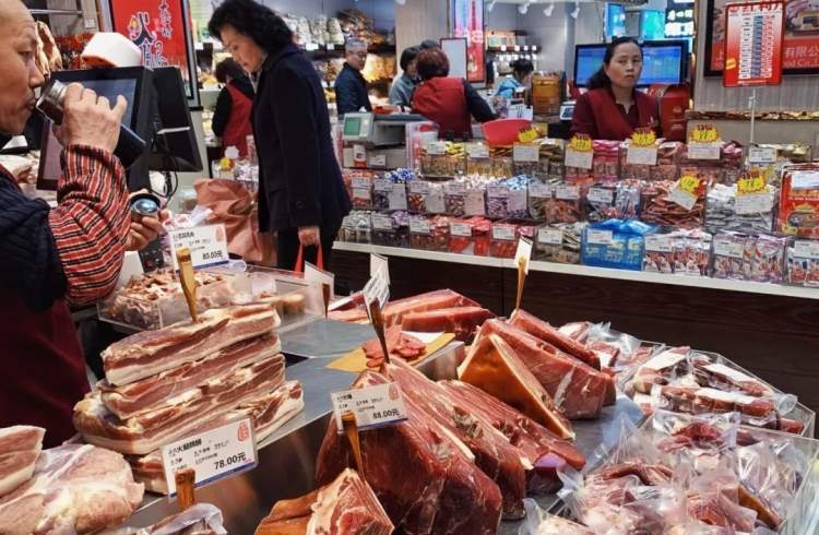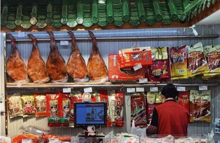 在土特产商店,火腿专柜占据着颇为醒目的位置。
