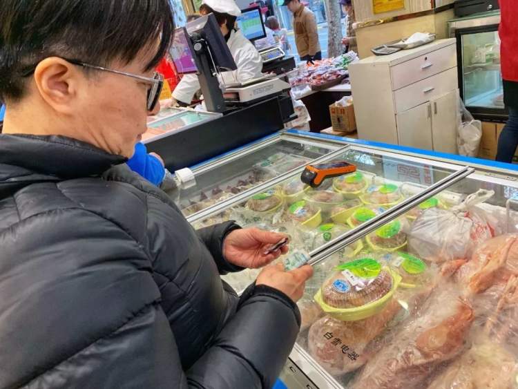 ■许多来逛食品店的阿姨爷叔手里握着现钞