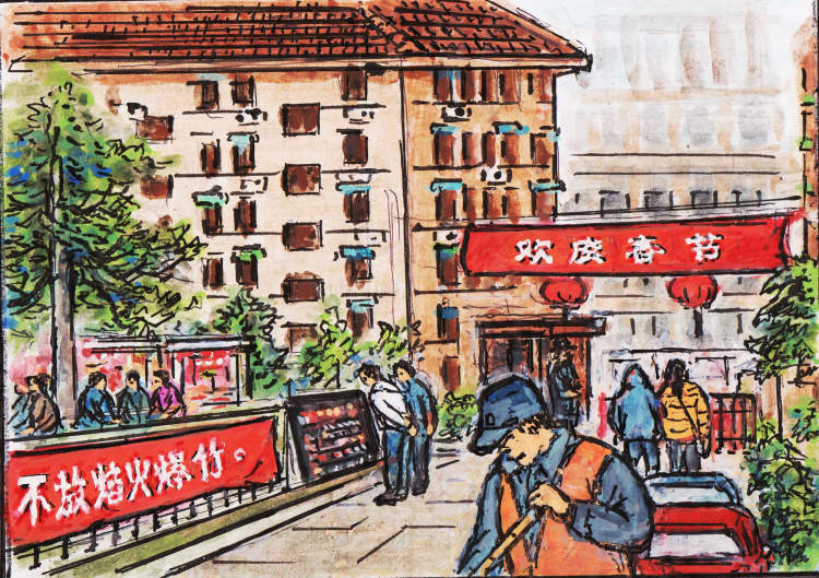 每到春节,家住静安区永兴路595弄的92岁老人蒋振国爷爷,心心念念要完成两件事,为《芷江西社区晨报》画封面年味图是其中之一,颇有仪式感。