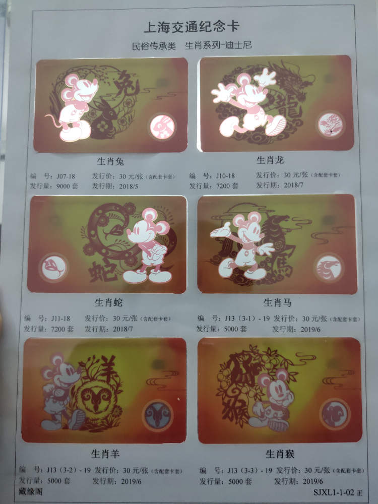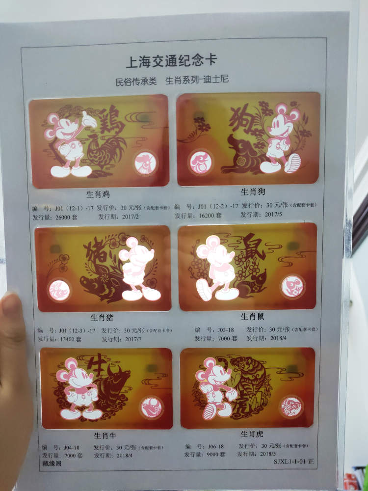 2017年-2019年期间陆续发行的迪士尼生肖交通卡,是少见的透明卡,对着灯光欣赏,可以看到“发光”米奇,别有一番趣味。