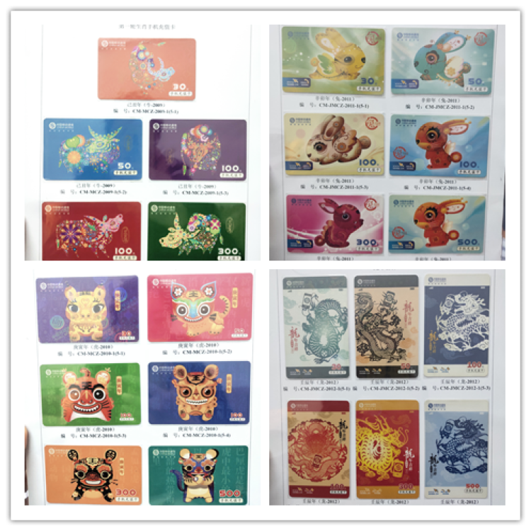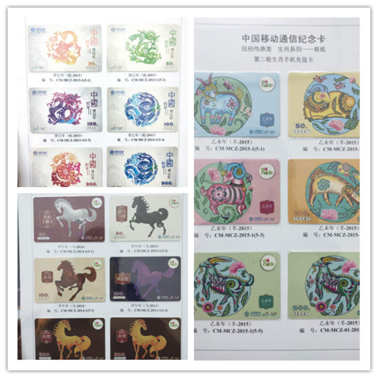 ▲中国移动通信纪念卡生肖系列2003-2017卡面