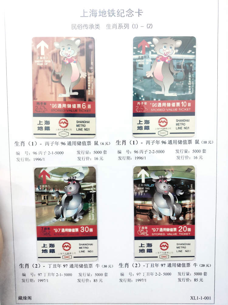 段国元所收藏的,从1996年开始逐年发行的上海地铁纪念卡生肖系列通用储值票、单程票,以生肖为主角,背景却是上海各个地铁站的照片,同样很有特色。