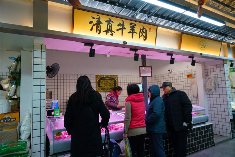 菜场内还有清真牛羊肉摊位。