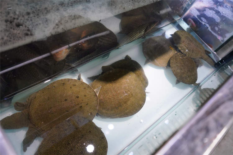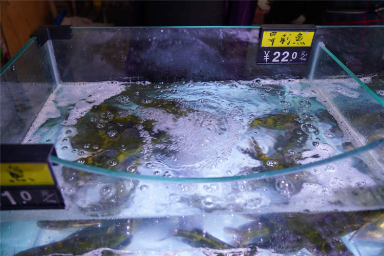 菜场里有两家卖水产品的,其中一家的来自苏州太湖,据店家介绍,店内鱼类等都是野生的,正在购买鱼的男子也表示,野生的和养殖的首先从样子上就不一样。