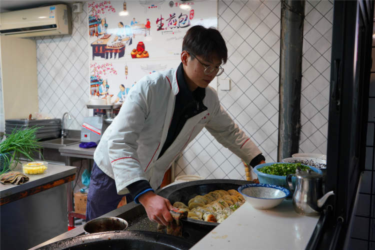 下午1点时分,美味的生煎、锅贴出锅了,小哥哥告诉周到君,这是当天的最后一锅,临近春节,收摊比较早,平时是从早上6点开到晚上6点。