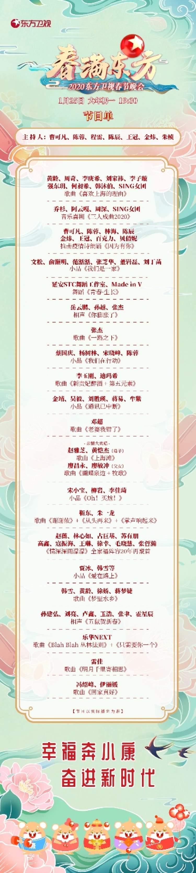 《春满东方·2020东方卫视春晚》将于1月25日大年初一19:30正式播出。