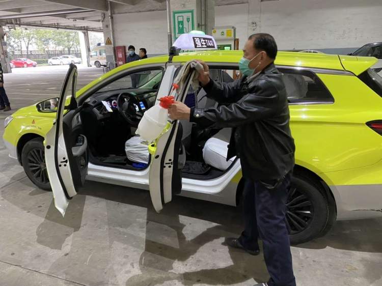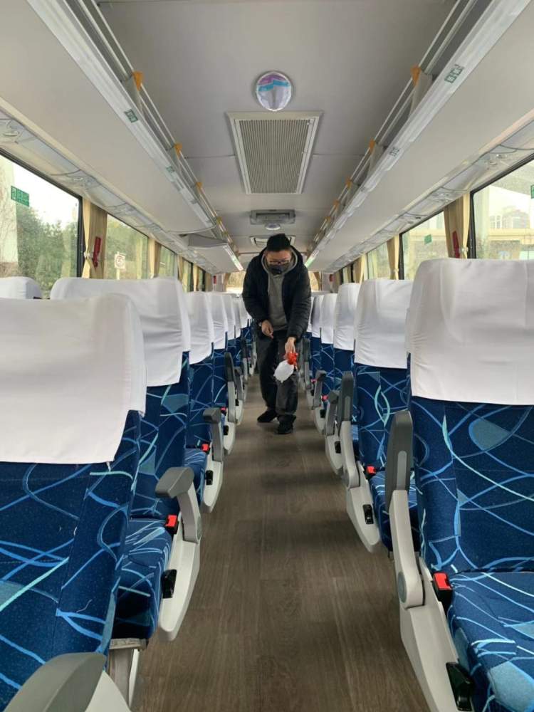 其他车辆也是如此,扶手、座椅、门窗……无论是出租车还是大巴车,车辆的每一个可见之处、隐蔽之角,驾驶员都不放过,都要仔细消毒清洗。每一单业务完成后,他们还会对车辆再次进行清洁,确保车内无污染,让每一位乘客安心乘坐,平安到家。