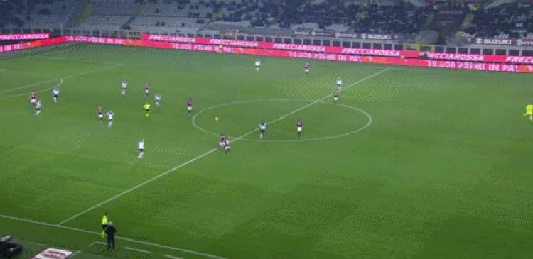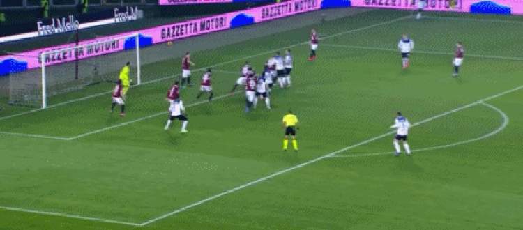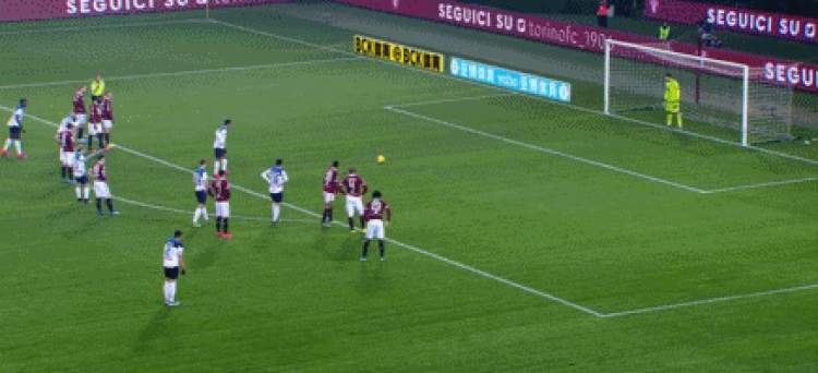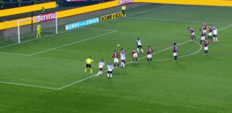 就在人们以为下半场的比赛即将进入垃圾时间的时候,第53分钟,整场比赛最精彩的一幕出现了:都灵队球员中场附近犯规,伊利西奇任意球快发直接超远距离吊射破门,打进了一粒能够竞争赛季最佳的进球。