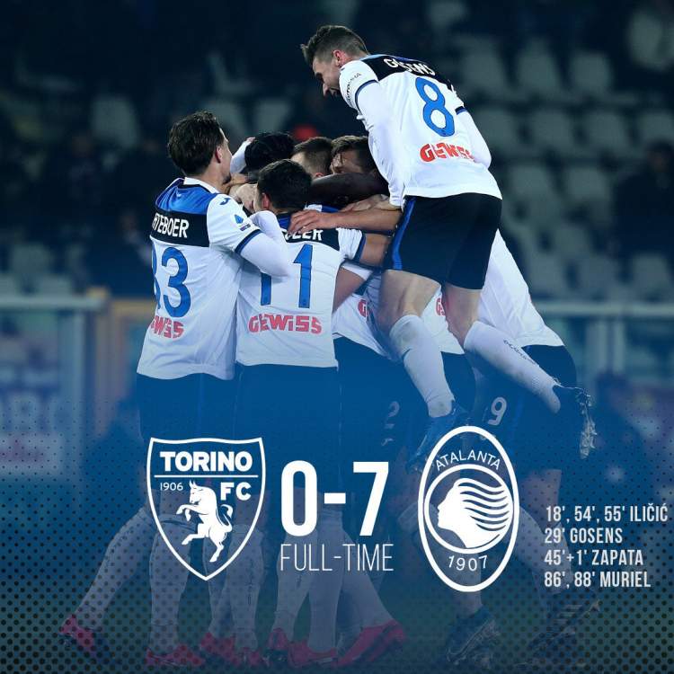 在北京时间今天凌晨的意甲联赛第21轮比赛中,此前就一直稳坐意甲攻击力第一名的亚特兰大在客场大发神威,他们以7:0横扫都灵升至积分榜第4位,伊利西奇上演帽子戏法,替补出场的穆里尔梅开二度,萨帕塔和戈森斯分别破门。