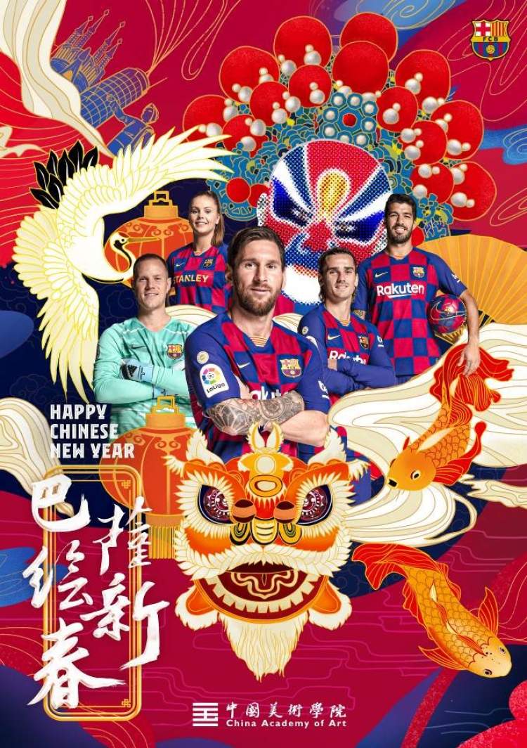 据悉,中国春节期间,巴萨俱乐部将通过社交媒体,陆续发布“巴萨贺新春”系列海报的作品。这一系列中国风主题海报由巴萨和中国美术学院设计艺术学院联合发布,缔造了相当富有创意的中国新年图案,为中国球迷送上特别的春节祝福。