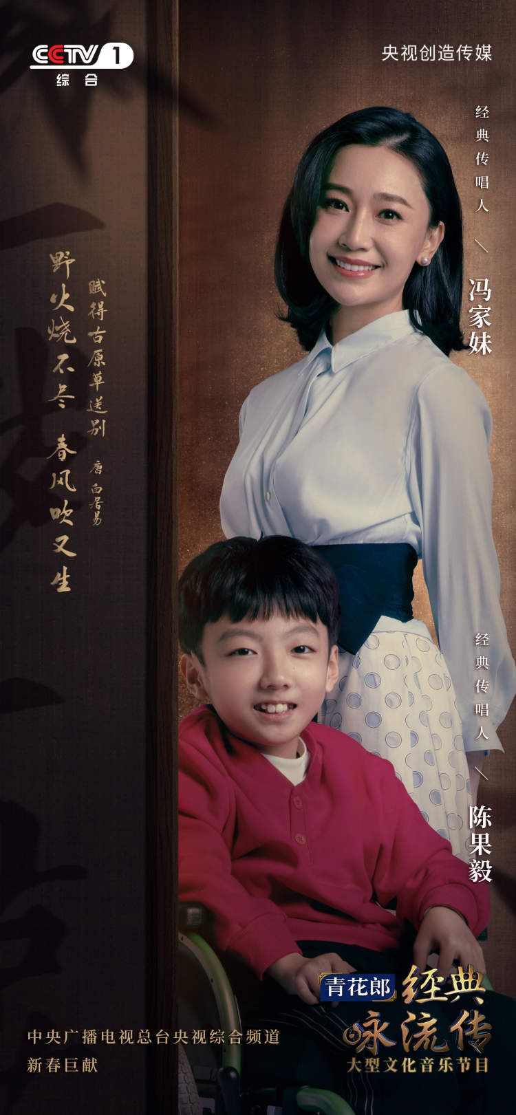 此外,歌手冯家妹则会搭档小童声陈果毅,共同唱出改编自白居易《赋得古原草送别》的《草》,展现“野火烧不尽,春风吹又生”的生命力量。