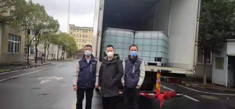 1月26日上午11时15分许,经过连夜运输,由圆通速递免费承运、从安徽滁州发车30吨双氧水,抵达湖北孝感市政府,用于疫情防控消毒。