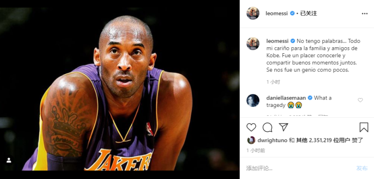 巴塞罗那球星梅西同样发文哀悼,“一位少有的天才离我们而去。”尤文图斯球星C罗也发声,“科比是真正的传奇,是很多人的动力来源。”