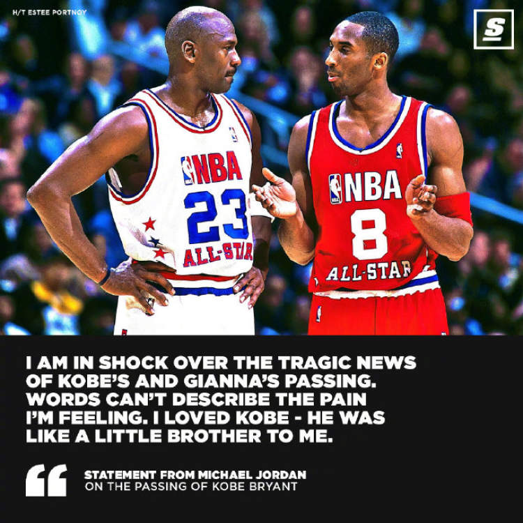 篮球界标杆人物迈克尔·乔丹同样发文悼念: