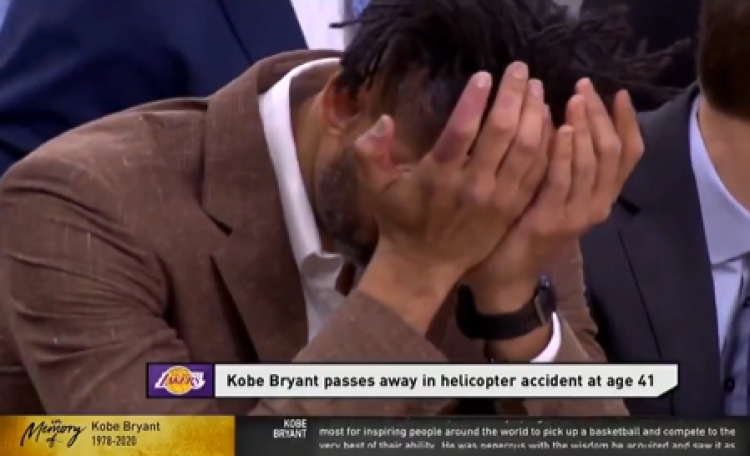 在消息得到确认后,有记者拍到刚从费城飞回洛杉矶的湖人队。刚刚在得分榜上超越科比的詹姆斯在机场痛哭,与友人拥抱以表慰藉。