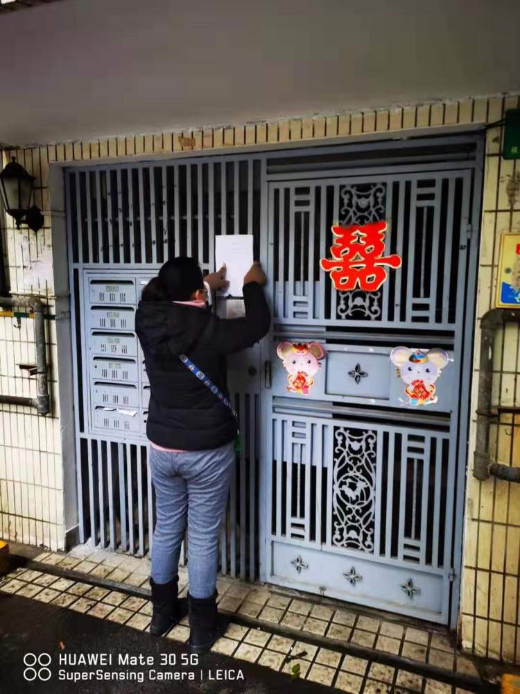 在各居民区内,由楼组长上门发放通知,询问各户是否有外出湖北或湖北籍亲朋前来的情况;街道组织工作人员对辖区内的宾馆酒店进行上门排摸,重点关注有无湖北籍人员入住;街道通过微信公众号推送《给居民的一封信》,提醒广大居民做好防护措施,并号召居民春节期间不串门、少去公共场所、取消聚餐。