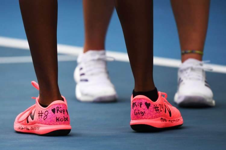 此外,在澳网的一场双打比赛中,15岁小将高芙穿着的两只鞋子上分别写有“8”和“24”——科比在湖人的号码先是8号后改为24号,鞋子上还写着“科比安息”、“Gigi安息”以及“黑曼巴精神”的字样。