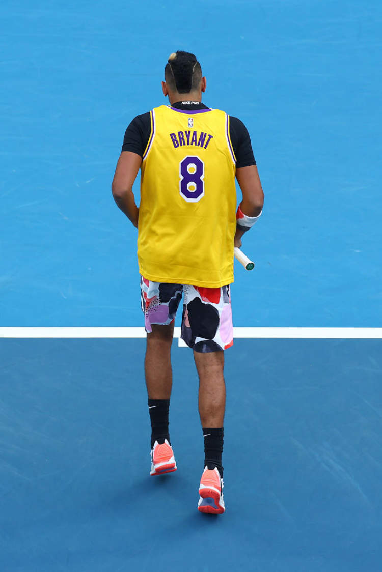 作为向传奇巨星科比的致敬,克耶高斯在27日与纳达尔澳网1/4决赛前,穿上了科比在湖人队效力时的8号球衣,球衣上印有科比的名字。