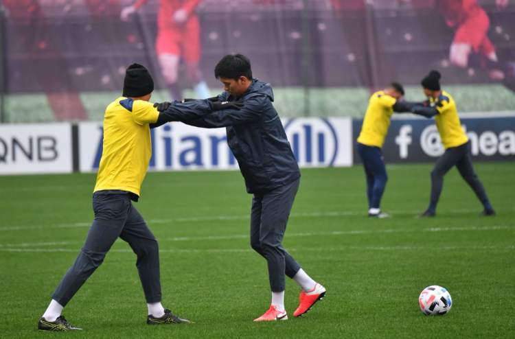客队武里南联在比赛球场上进行了一个多小时的训练。应该说,一周前刚刚踢完一场亚冠资格赛的他们,正在比赛状态中。当然,上海这里冬天寒冷的天气对他们来说是一个考验。