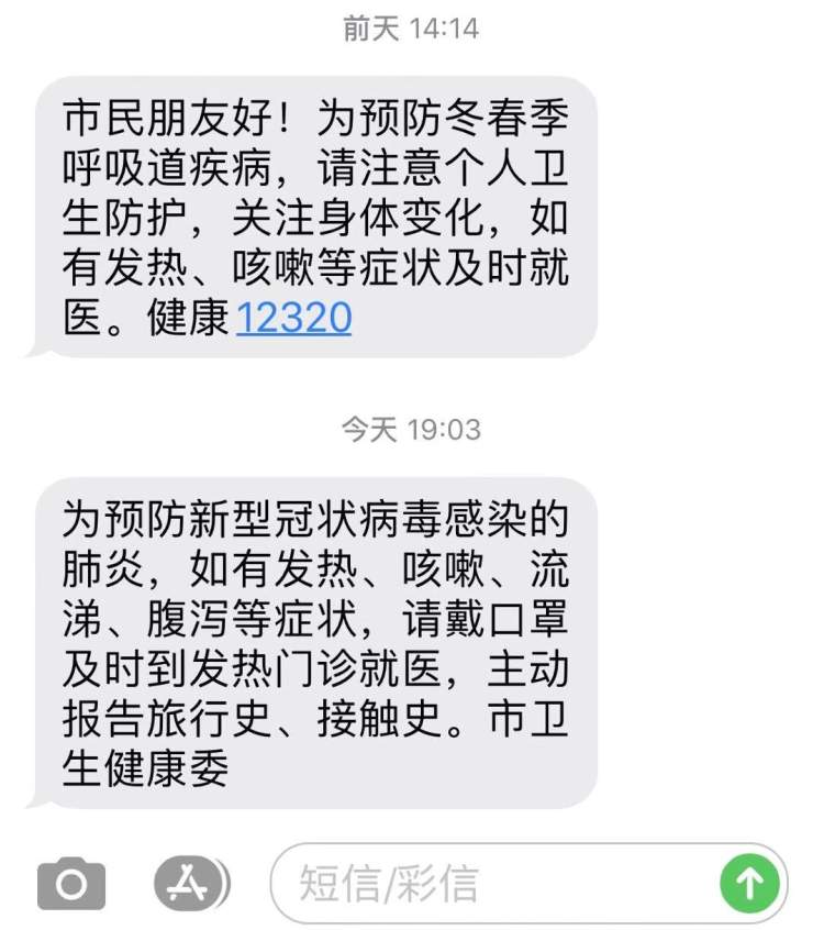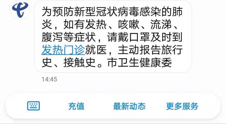 近日,很多市民都收到了来自三大运营商关于“新型肺炎”的提示短信: