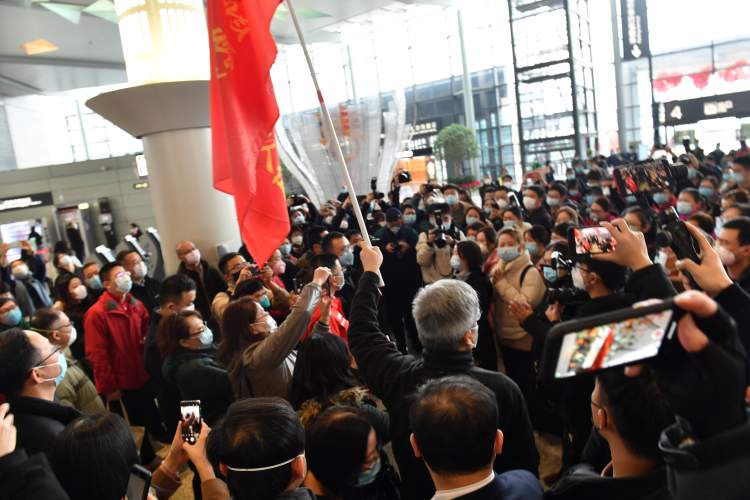 1月28日下午1时30分,第二批上海援鄂医疗队的148位队员接到指令赶到上海虹桥机场T2航站楼集结,准备驰援已经在武汉当地开展工作的第一批医疗队,“众志成城、不辱使命”的口号响彻整个候机楼,需要运输的还有大量前方急需的医疗装备。这也是东航执行的第九架运输医护人员和抗疫物资的包机,航班号为MU800。
