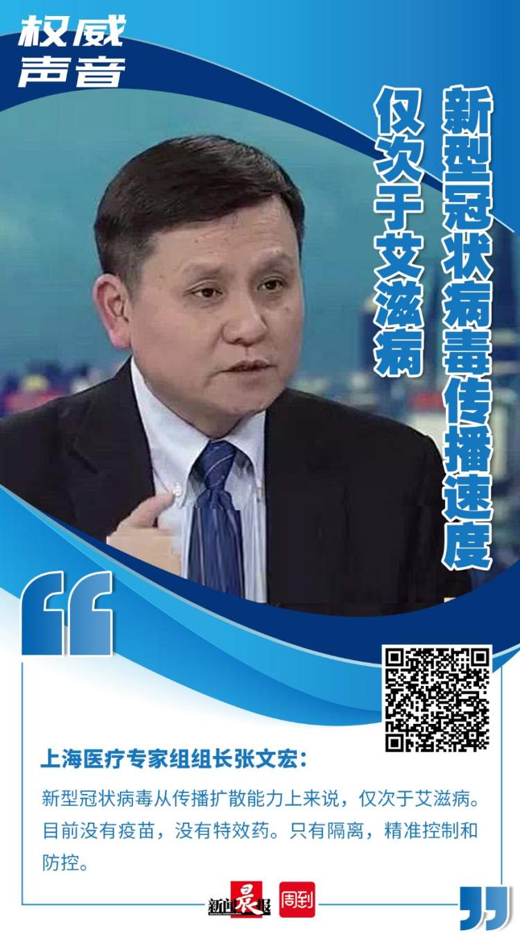 划重点!关于新冠肺炎,上海医疗专家组组长最新透露了这些重要信息 周到君 2020-1-29 来源:周到上海 病例数增加代表疫情加重? 错,所谓“没有检测就没有传染病”。 今天上午,上海医疗专家组组长、复旦大学附属华山医院感染科张文宏教授在接受媒体采访时表示,病例数增加不代表疫情加重,而是反映了检测与防控的到位。 此外,张文宏还透露,新型冠状病毒传播速度仅次于艾滋病;元宵节前能控制疫情是战胜新型冠状病毒关键点…… 关于新型新型冠状病毒肺炎的防控,还有哪些重要信息?周到君这就为你划重点↓ 来源:周到上海 作者:周到君 赞一个 (0)