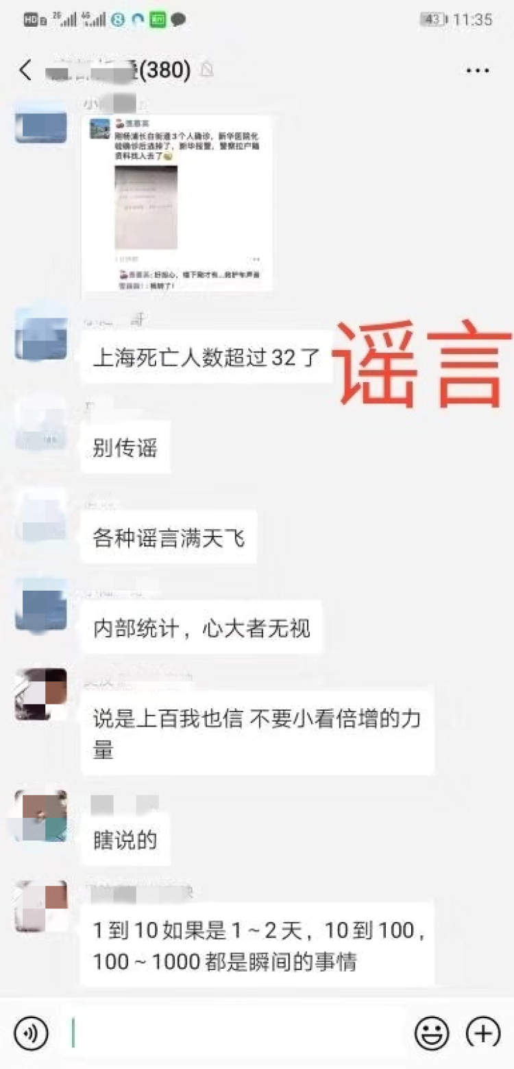 1月23日,网民“查尔斯·徐”在微信群中不断散布“上海死亡人数超过32了”、“上海死亡40,确证120疑似60,下午六点数据”等耸人听闻的不实信息,随意编造、刷新所谓疫情数据,制造恐慌情绪。