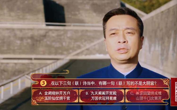 而在题型方面,第五季也别出心裁,出题人现身外景地,带来电影大片般的“考题”,让选手和观众都有一种沉浸感。当康震教授置身西安大明宫遗址公园,昔日长安城的风华仿佛就在眼前。