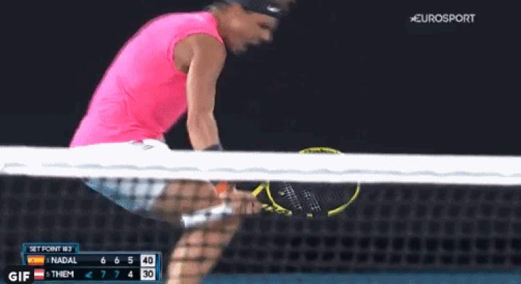 第四盘,蒂姆率先取得破发优势,之后双方互保,5-4后来到蒂姆的发球胜赛局。不过蒂姆的这个发球局心态出现波动,打出两个非受迫性失误后被纳达尔破发成功。6-6后,本场比赛第三次抢七决胜——蒂姆抢七中6-4获得2个赛点,均被纳达尔一一化解,但蒂姆擦网球再获一个赛点。之后蒂姆发球,纳达尔回球下网,蒂姆终于获得了这场比赛的胜利。
