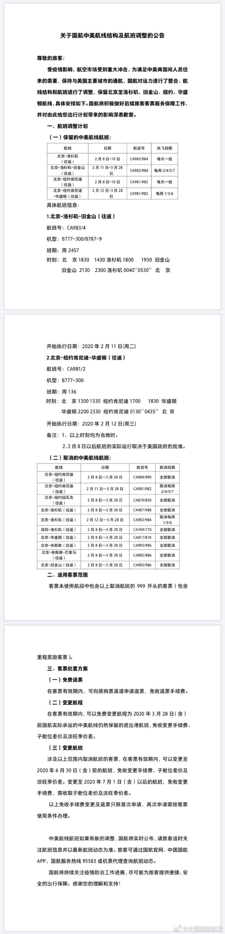 国航中美航线结构及航班调整,临时开通两条串飞航线 陈琼烨 2020-2-09 来源:周到上海 受疫情影响,为保持与美国主要城市的通航,满足中美两国间人员往来的需要,国航对运力进行了整合、航线结构和航班进行了调整,保留北京至洛杉矶、旧金山、纽约、华盛顿航线。 值得注意的是,自2月11日起,国航将临时开通过北京–洛杉矶–旧金山和北京–纽约–华盛顿两条串飞航线。 来源:周到上海 作者:陈琼烨 赞一个 (0)