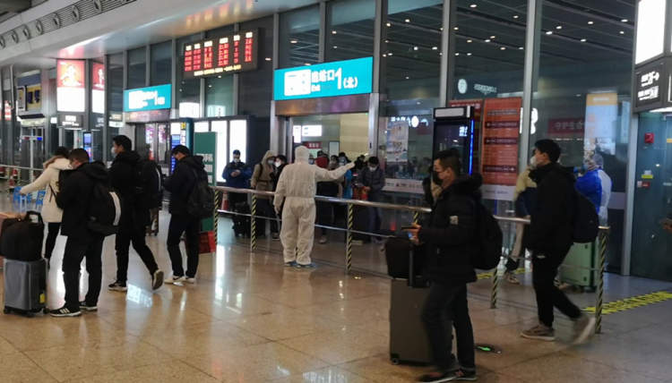 虹桥火车站的广播也在循环播报:“请全体旅客到达后,在出口进行红外测温测量体温,根据上海市要求,进沪人员必须如实填报个人健康表……”