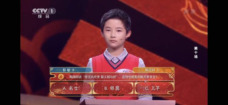 应该说,除了彭敏外,此次角逐总冠军的另外三位选手实力也不容小觑:11岁的诗词少年韩亚轩,是五季以来首个少儿团擂主,他也稳稳地闯过飞花令和超级飞花令,最终和彭敏一决高下。