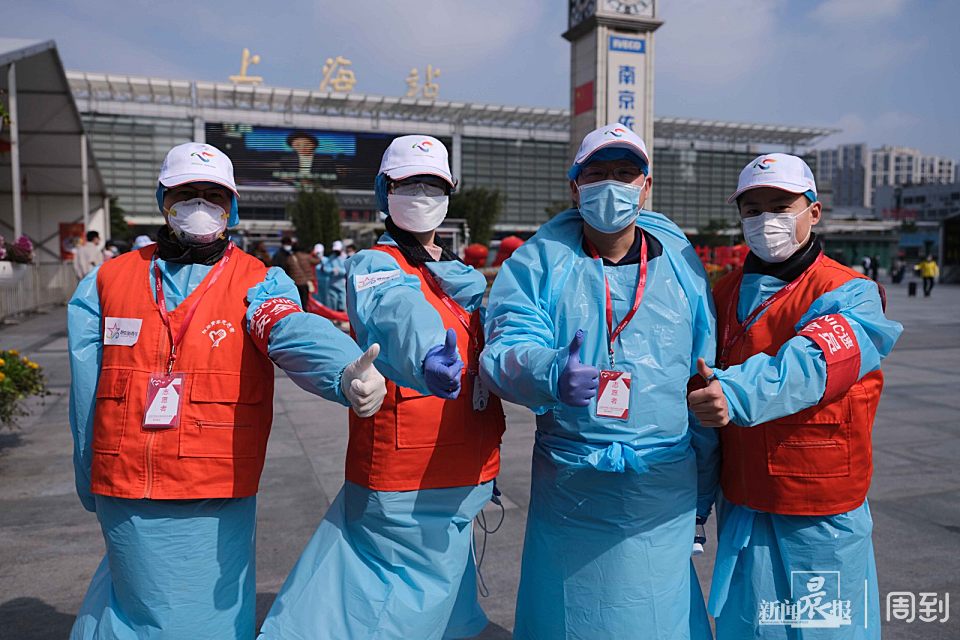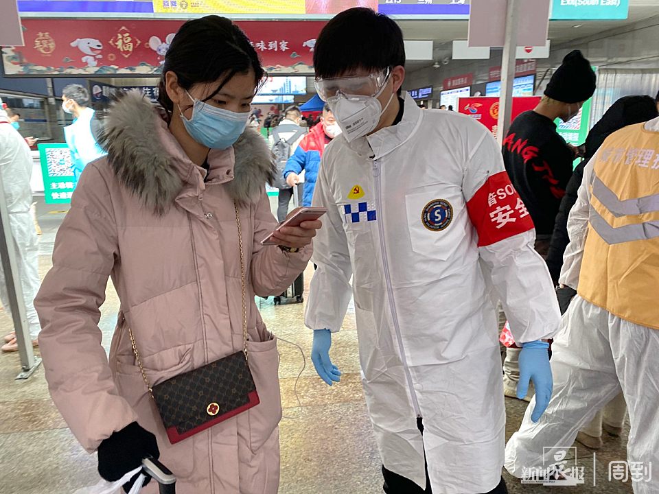 上海站日均人流量大,上海音速青年志愿服务中心专业志愿者在铁路上海站三个出口、两个进口协助站区工作人员开展进站乘客体温检测和疑似患者转运工作。
