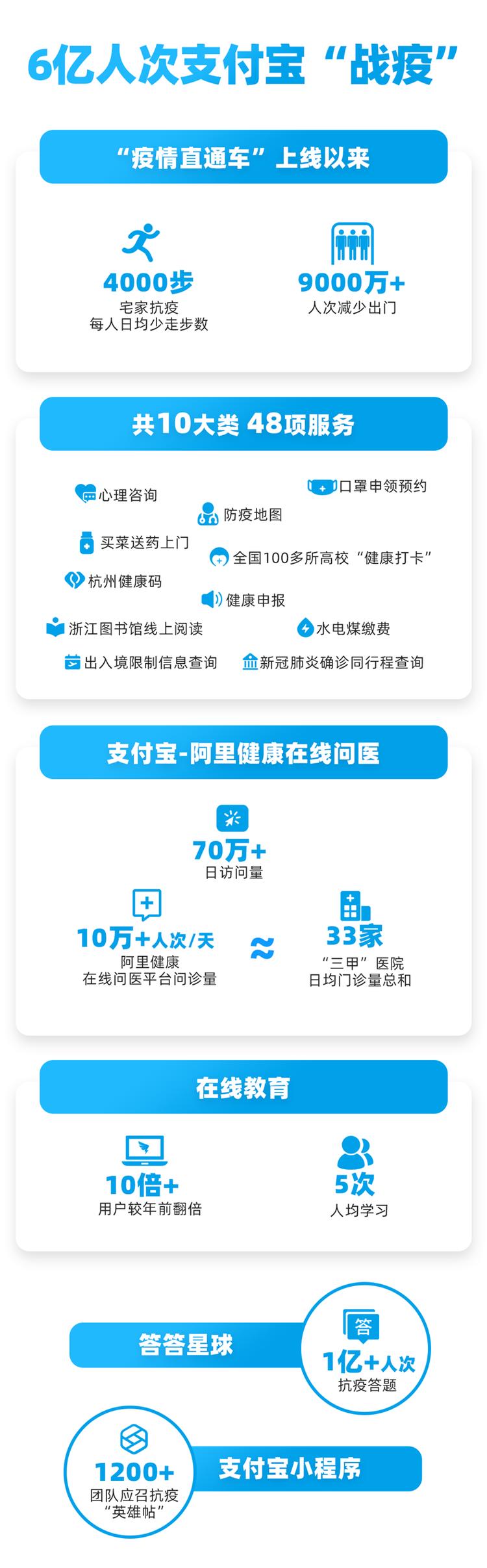 此外,超过1亿人,在支付宝的答答星球参与抗疫答题,学习各种疫情知识。