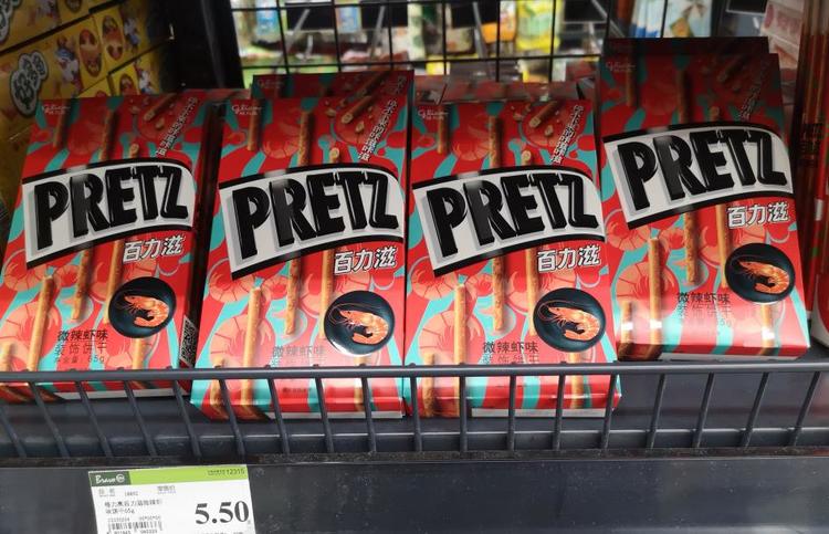 还有微辣虾味的百力滋。摆了四列,也被拿掉了不少。