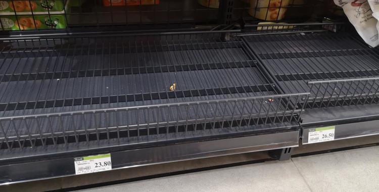 周到君下午去的超市,超市供应基本都足的,但这些货架还是空的差不多了。