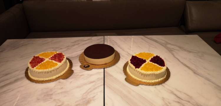 晚餐我们被“投喂”了麦当劳的汉堡和菠萝派,感受到吃撑的同时,也感受到社会大众满满的爱,连酒店精心准备的三个奶油蛋糕也只有看看的份了。