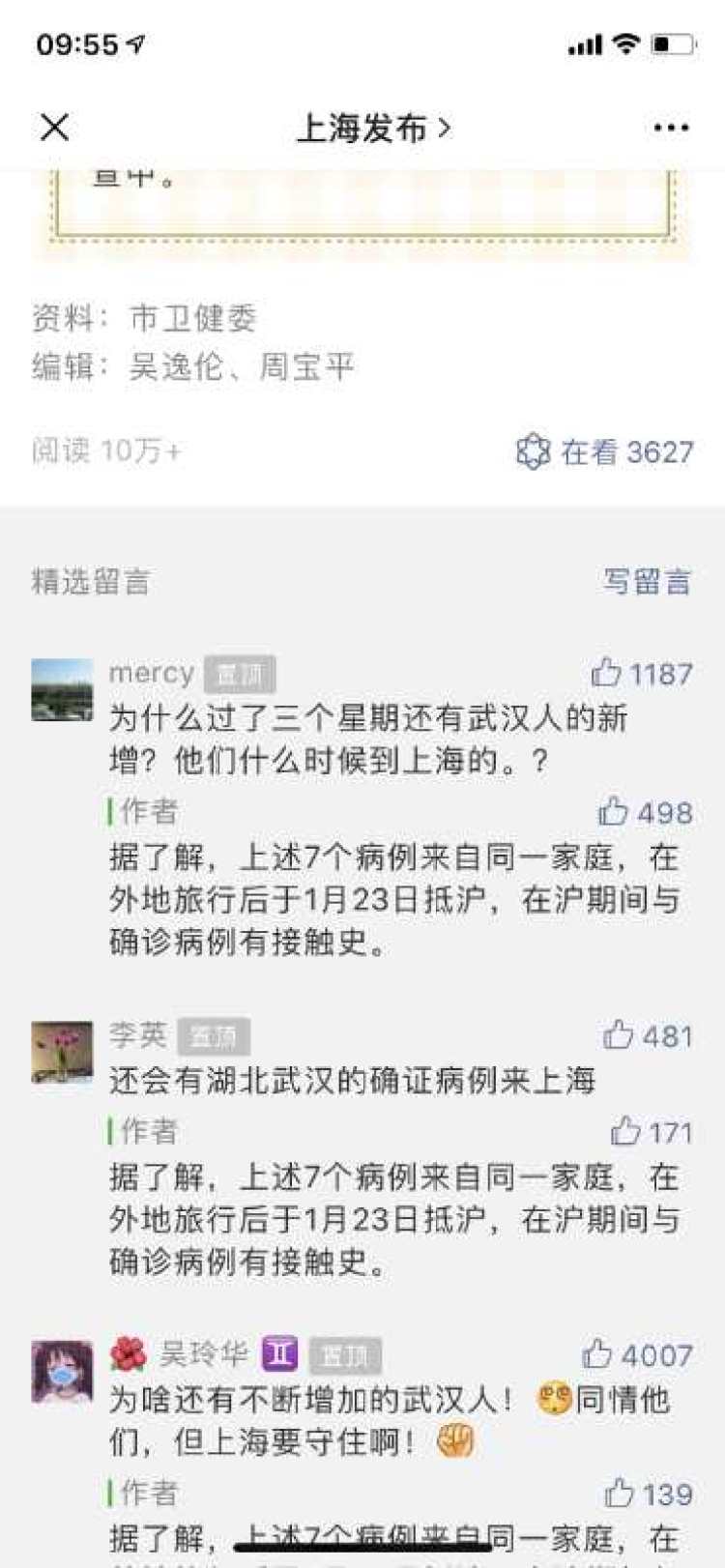 上海新增病例7例来自武汉一家,1月23日抵沪与其他患者有接触 陈里予 2020-2-15 来源:周到上海 上海市卫健委今早(2月15日)通报:2020年2月14日12—24时,上海市排除新型冠状病毒肺炎疑似病例47例;新增确诊病例8例,其中7例为外地来沪人员,1例为本市常住人口。 针对网友疑问,为何仍新增7名武汉确诊患者,上海发布回应称,7人来自同一家庭,在外地旅行后于1月23日返沪,在沪期间与确诊病例有接触史。 来源:周到上海 作者:陈里予 赞一个 (0)