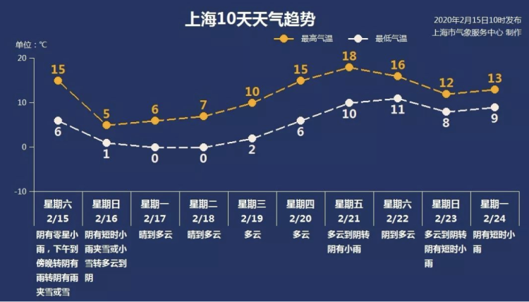 原来,在此次寒潮到来之前,上海处于中东部的大回暖区域中,上海2月11-14日已经连续4天的日平均气温超过10℃,今天竟不知不觉中成了本轮入春冲刺的最后一天!已知今天最高气温15℃,如果今天的日均气温可以达到10℃,那么申城可能已于2月11日气象入春。