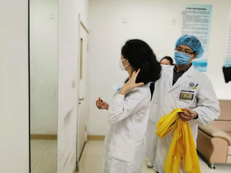 熊医生在仁济是家喻户晓的存在。当确诊第一例患者需要陪同转移这位已经气管插管的患者时,他挺身而出,要求把危险留给自己,与党员护士范长青一起圆满完成了任务。