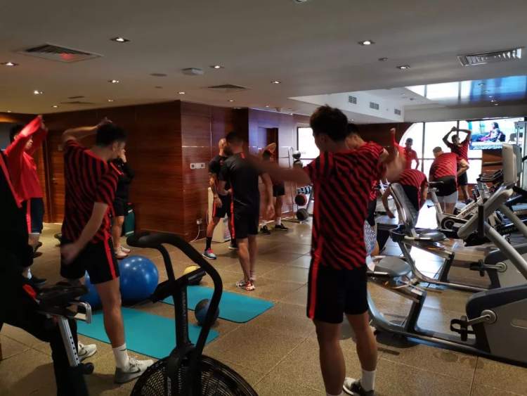 在迪拜的训练,上港队每天都是有规律的一天两练,白天在酒店健身房进行身体力量训练,傍晚到球场进行有球训练。