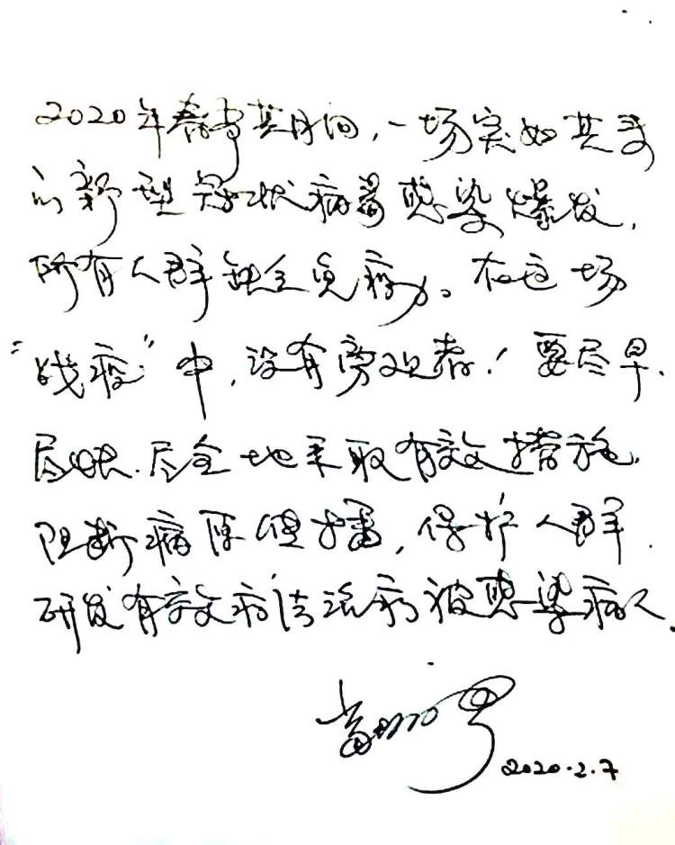 自2月1日起,上海图书馆中国文化名人手稿馆发起了“抗击疫情、共克时艰”——各界名家寄语征集活动。