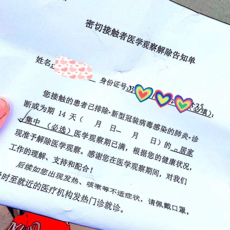 2月16日,当从工作人员手中接过《解除医学观察告知书》时,童童终于如释重负。她动情地说道,“这个年,大家都过得辛苦了,感谢所有辛苦付出的工作人员!”