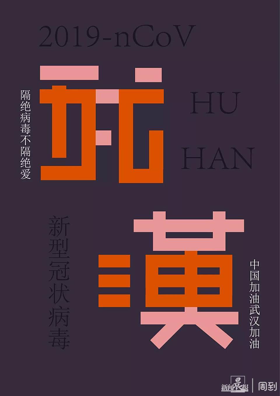 设计介绍:把武汉两个字中间变形做成加油,旁边用了“隔绝病毒不隔绝爱”为隐喻。